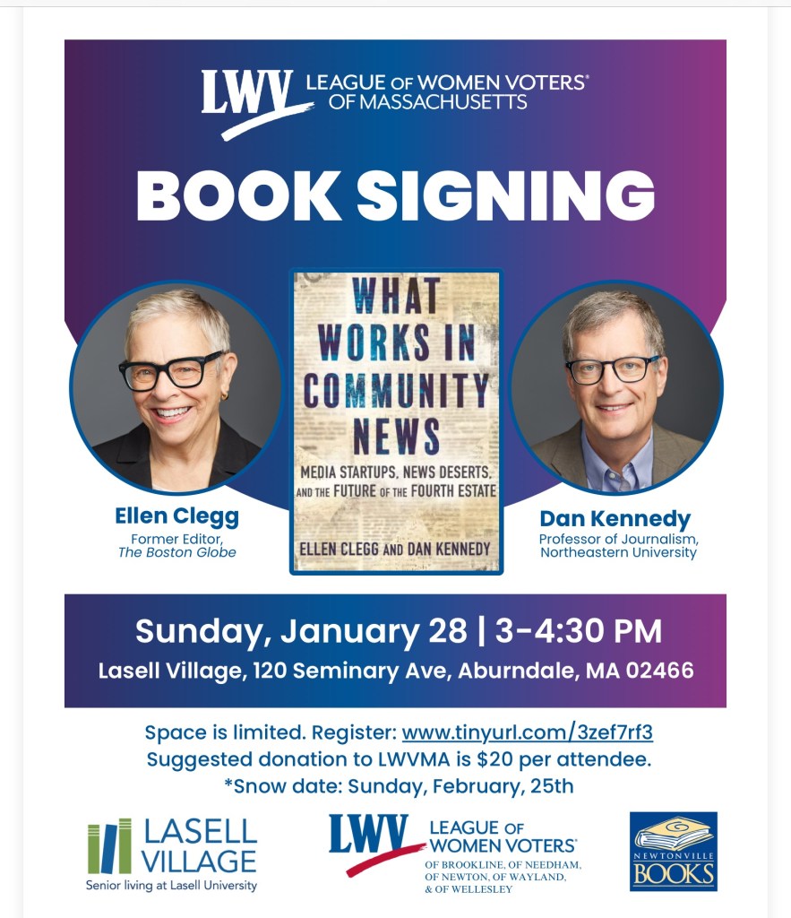 What Works in Community News on Sunday, January 28th, 3 pm January 10, 2024January 11, 2024 ~ League of Women Voters of Wayland Share this: Share on X (Opens in new window) X Share on Facebook (Opens in new window) Facebook Like Loading... Related